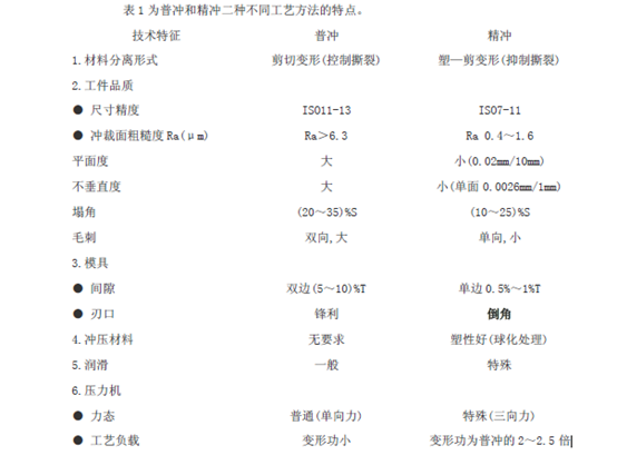 但是包含有特殊工藝參數(shù)的加工方法。由它生產(chǎn)的零件也具有不同的質(zhì)量特征。特別是在精沖與