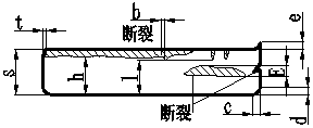 總和不大于相關(guān)輪廓的10%;t—允許的斷裂深度為1.5%S;e—毛刺高度(mm);c—塌角寬度為30%S(最大);d—塌角深度為20%S(最大)(齒形件時(shí)為30%S);E—撕裂帶的最大寬度。